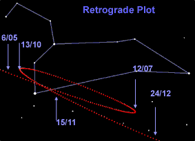 the movement of Mars across Leo, over a 6 month period. Retrograde